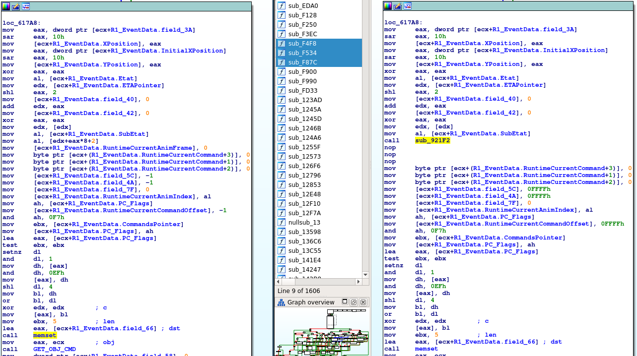 Here is a comparison of the Designer disassembly before (left) and after (right) patching: